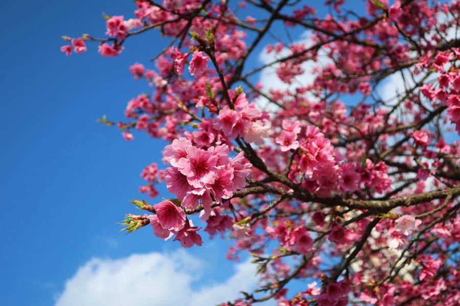 藍天映著粉嫩的櫻花